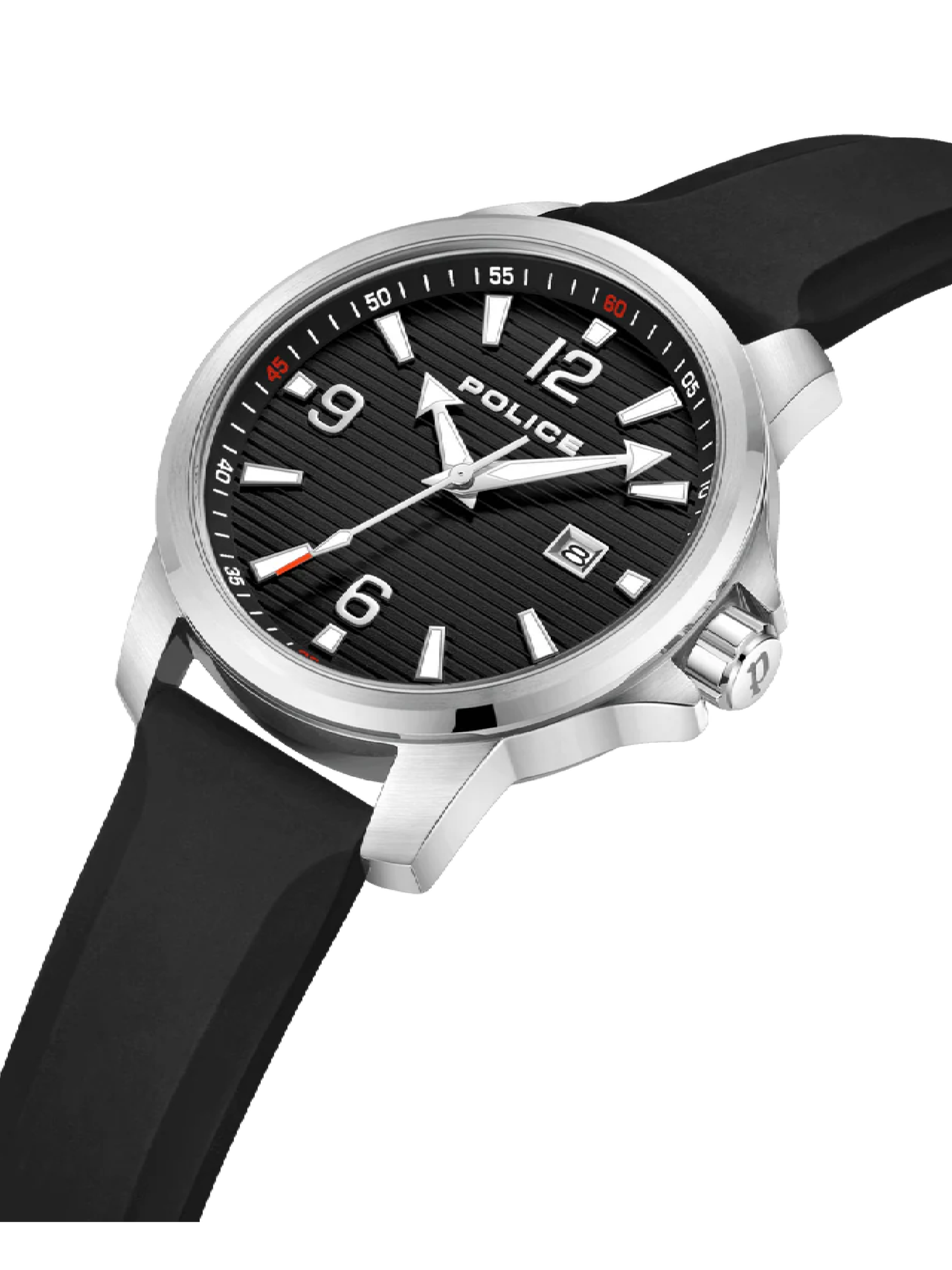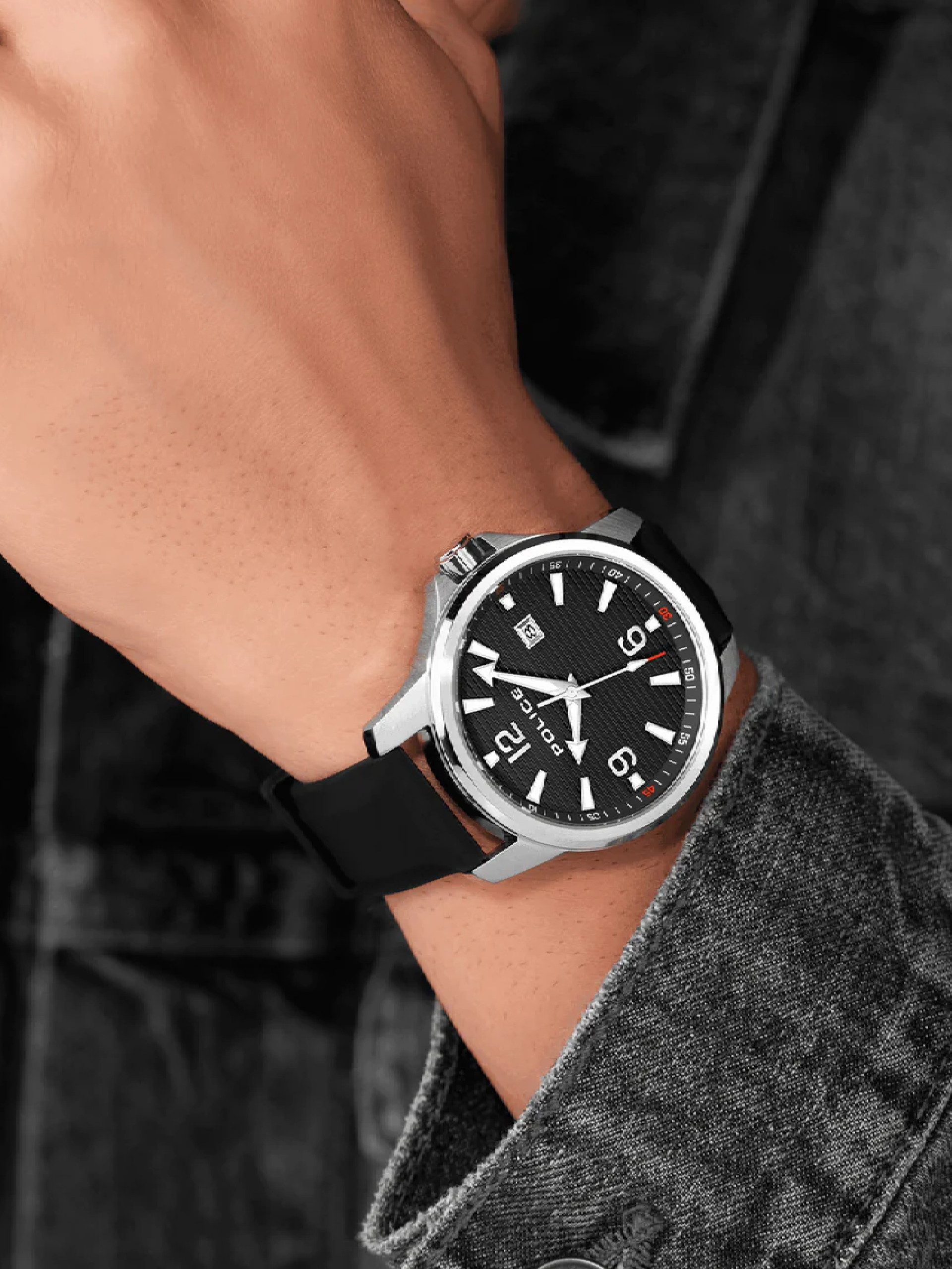 IVA Incluído à taxa em vigor.Urbano e assumidamente masculino, Mensor é construído sobre o mesmo ethos do Police – sendo destemidamente ousado de ponta a ponta. As linhas refinadas no mostrador preto são notavelmente equilibradas pela estética bem definida, e Mensor carrega uma voz única e um visual distinto que o diferencia. O relógio possui uma janela de data para maior praticidade e é acompanhado por uma elegante pulseira de silicone preta para conforto e estilo, tornando a mudança da mesa para o jantar sem esforço.